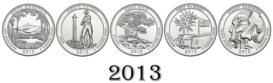 2013- Brilliant Uncirculated Set of 5 National Park Quarter Coins