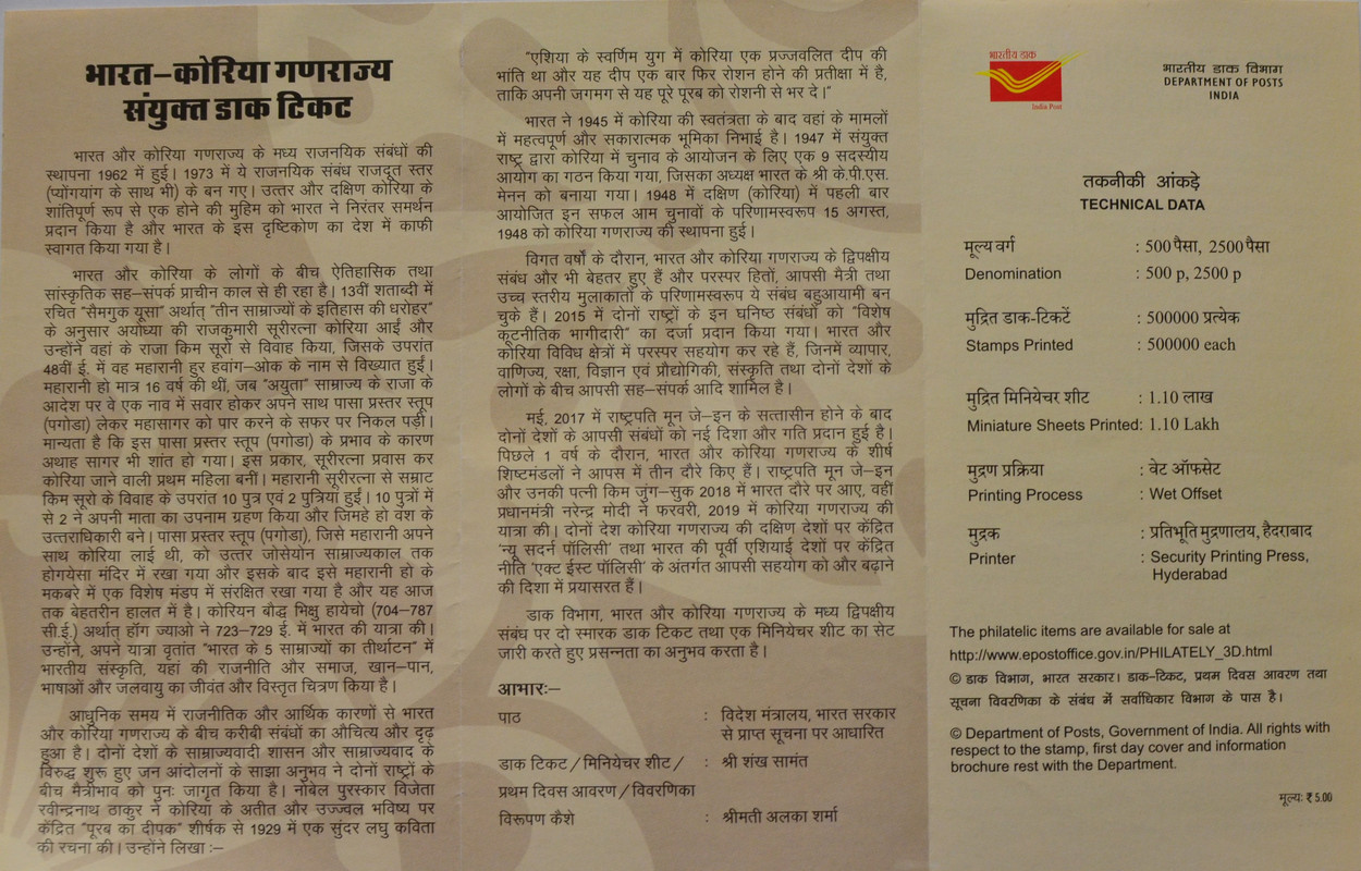 2019-India-Republic Of Korea Joint Issue (BR)
