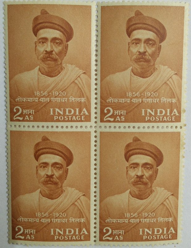 23 July 56 Lokmanya Bal Gangadhar Tilak. Personality, Freedom Fighter, Journalist, 2 Anna. (Block of 4 stamp)