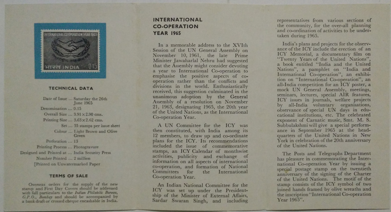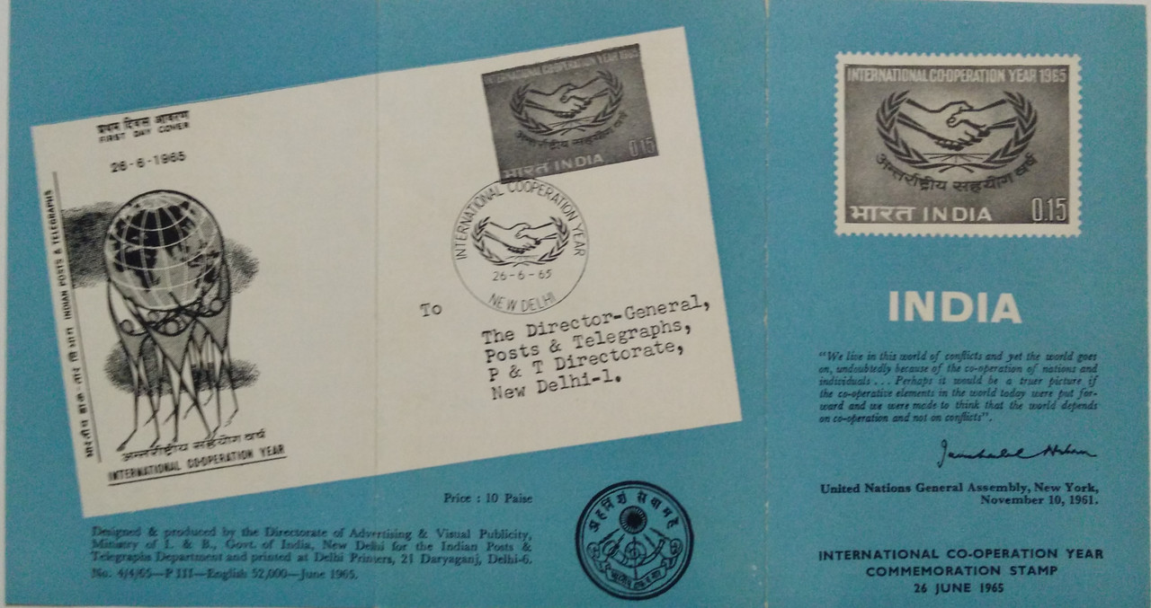26 Jun. 65 International Cooperation Year. Co-Operation, Hands, Grain, Olive Wreath, Kotinos (BR)