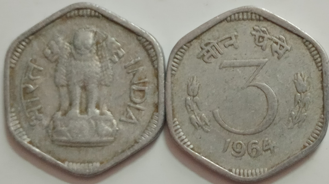 3 PAISE-1964_USED_1 N0 (KOLKATTA MINT)