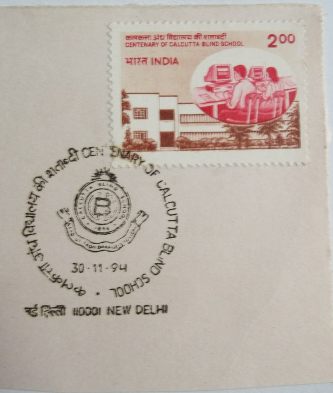 30 Nov.94 Centenary of Calcutta Blind School.1st Day Cancellation