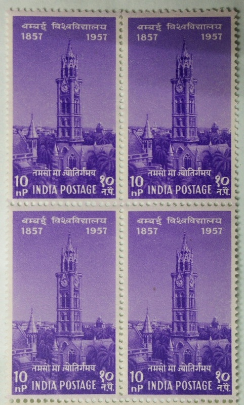 31 Dec 57 Centenary of Universities – Bombay University, Education, Institution, 10 nP. (Hinged Block of 4)