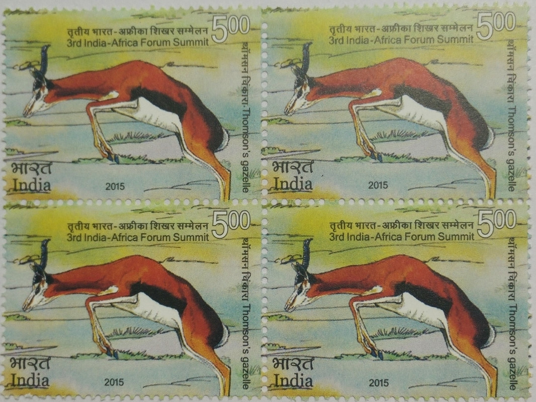 3rd India – Africa Forum Summit Summit, Event, Wild Life, Thomson?s Gazelles, Eudorcas thomsonii Rs. 5 (Block of 4 stamp)