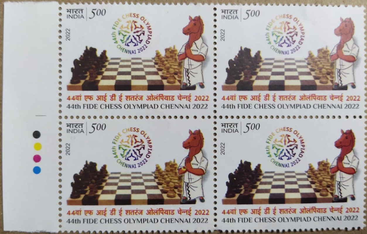 44th Fide Chess Olympiad Chennai Rs.5 (Block of 4 TL Stamp)