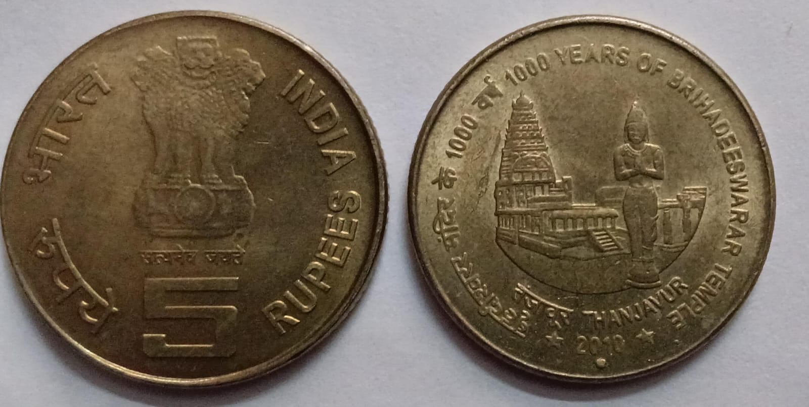 5 Rupees -1000 YEARS OF BRIHADEESHWARAR TEMPLE ,THANJAVUR 2010 (NOIDA MINT)