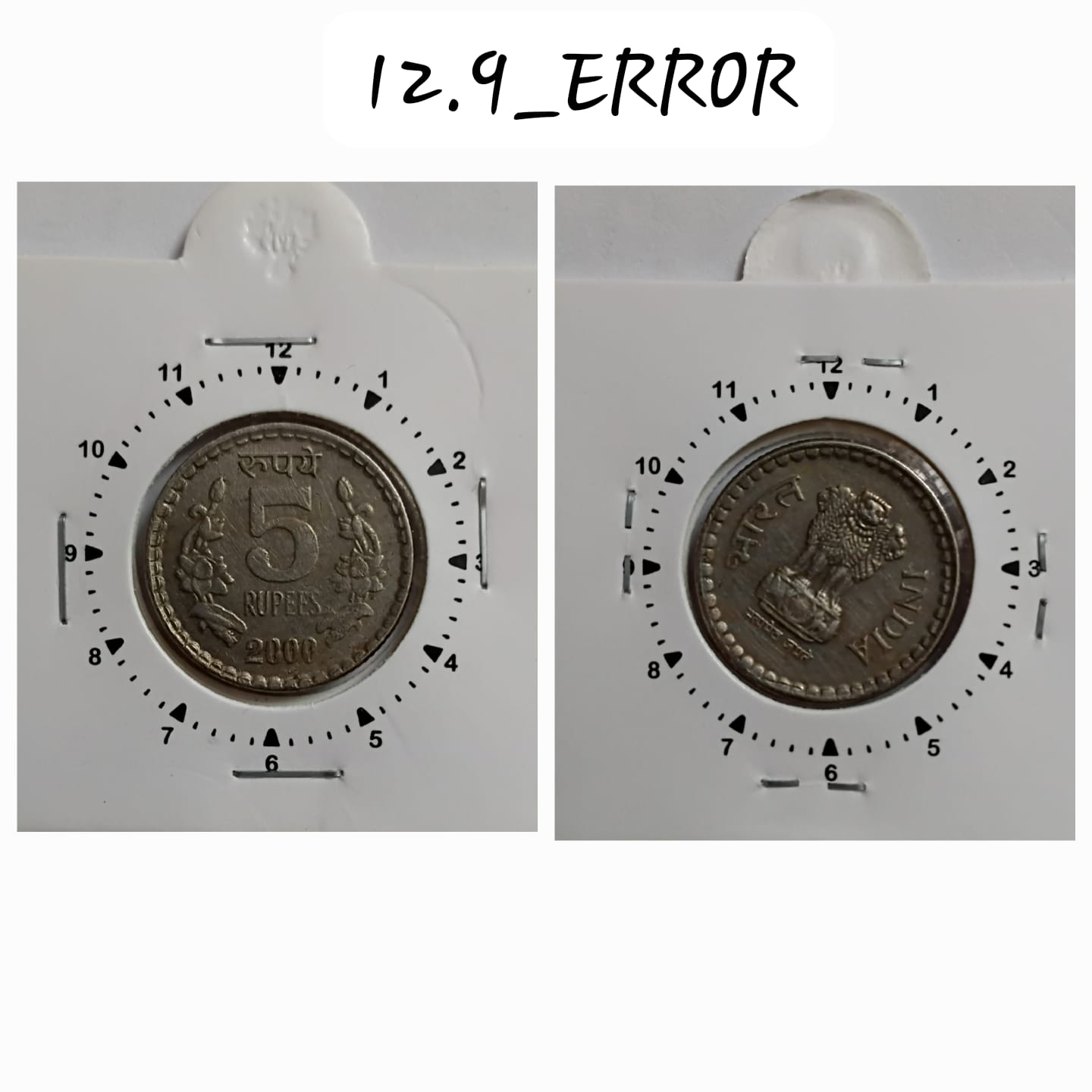 5 RUPEES 2000 KOLKATA MINT 1 O’CLOCK ROTATION ERROR COIN UNC