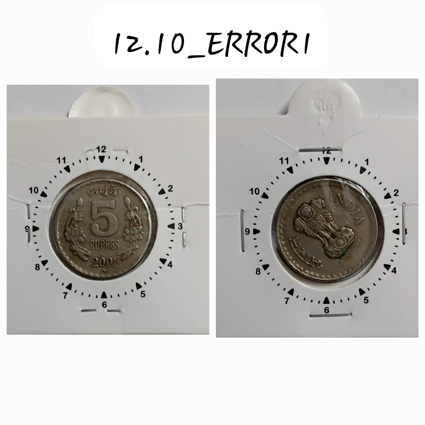 5 RUPEES 2001 HYDERABAD MINT 10.5 ROTATION ERROR COIN USED