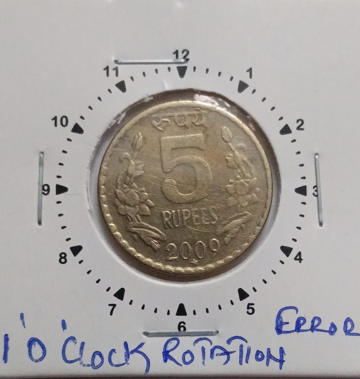 5 Rupees 2009 Hyderabad Mint 1 O’ clock Rotation UNC. Collectible numismatic item. Stock image shown.