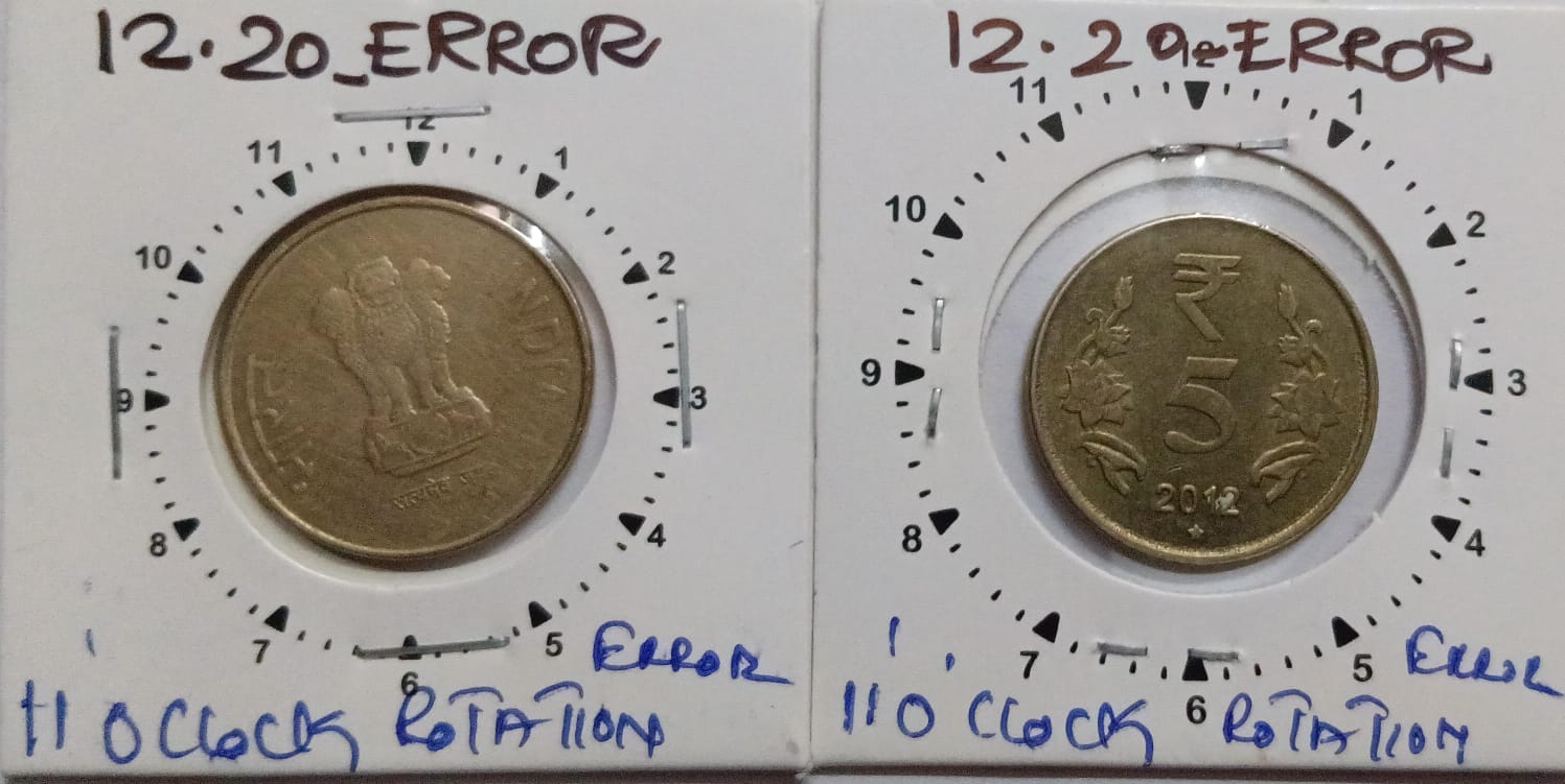 5 Rupees 2012 Hyderabad Mint 11 O’clock Rotation Error Coin Used
