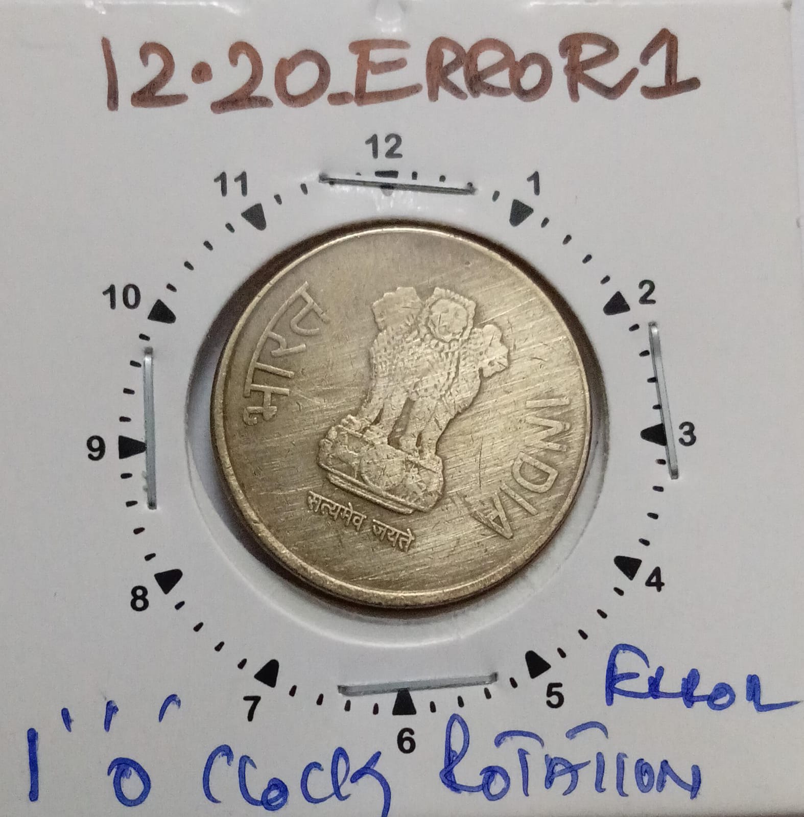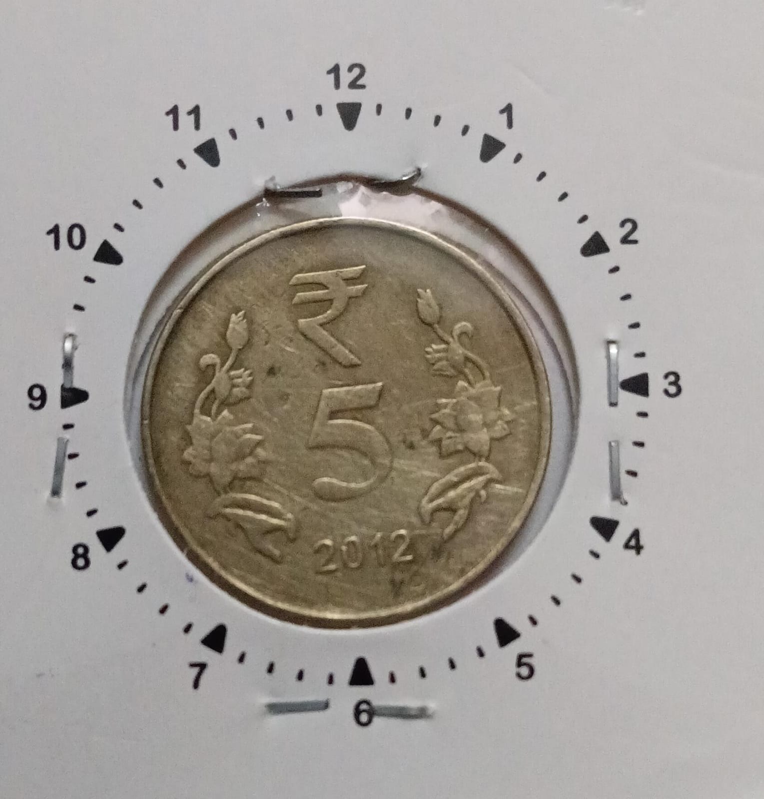 5 Rupees 2012 Kolkata Mint 1 O’clock Rotation Error Coin Used