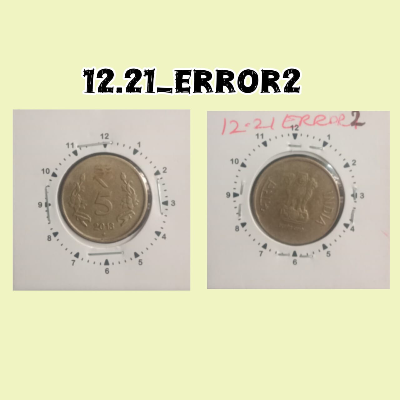 5 RUPEES 2013 HYDERABAD MINT 12.30 CLOCK ROTATION ERROR COIN USED