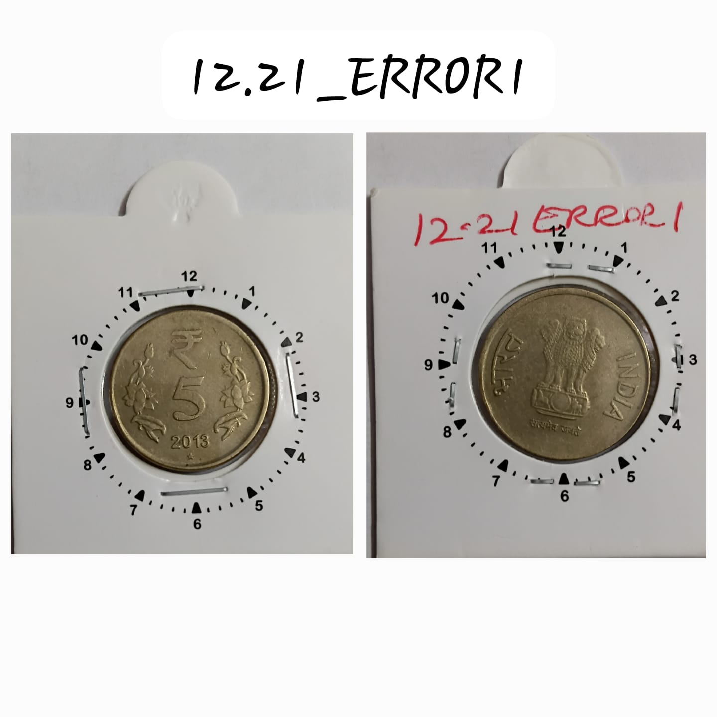 5 RUPEES 2013 HYDERABAD MINT OFF CENTRE&1 O’CLOCK ROTATION ERROR COIN USED