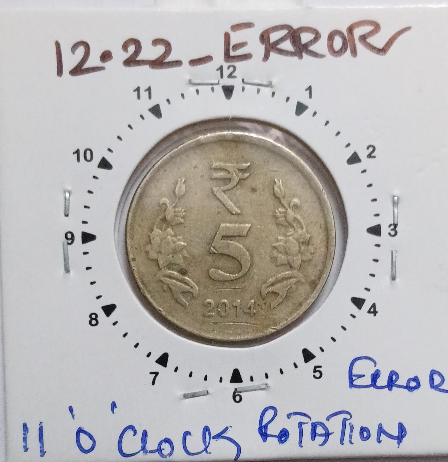 5 Rupees 2014 Kolkata Mint 11 O’clock Rotation Error Coin Used