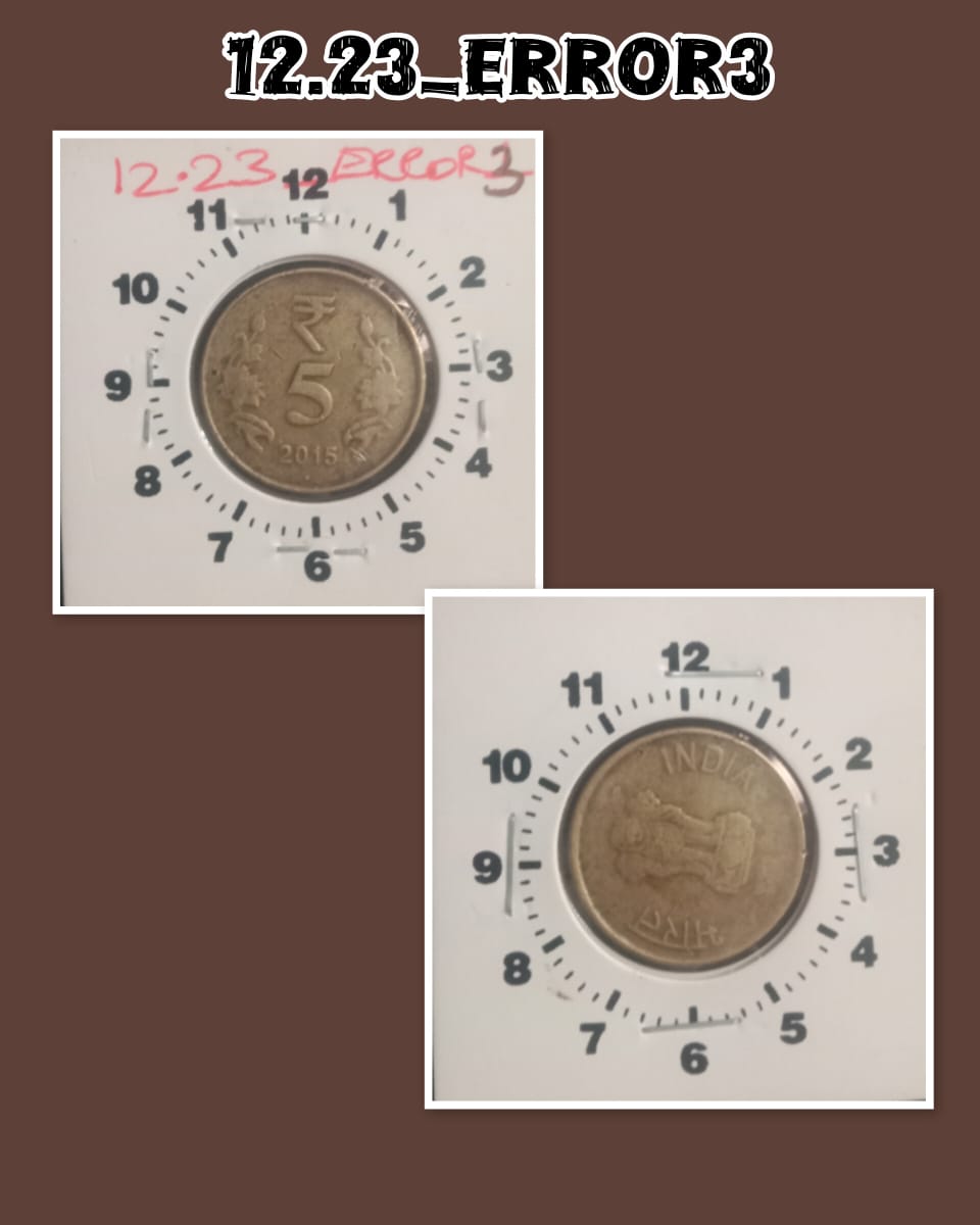 5 RUPEES 2015 NOIDA MINT 9.30 ROTATION ERROR COIN USED