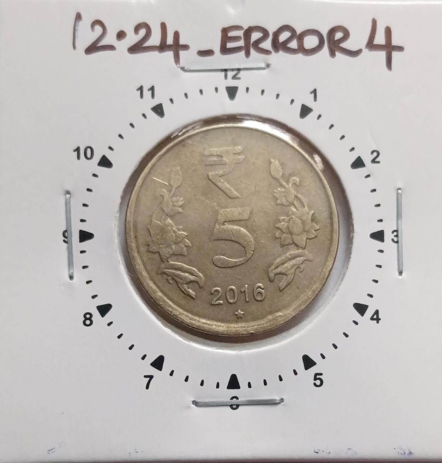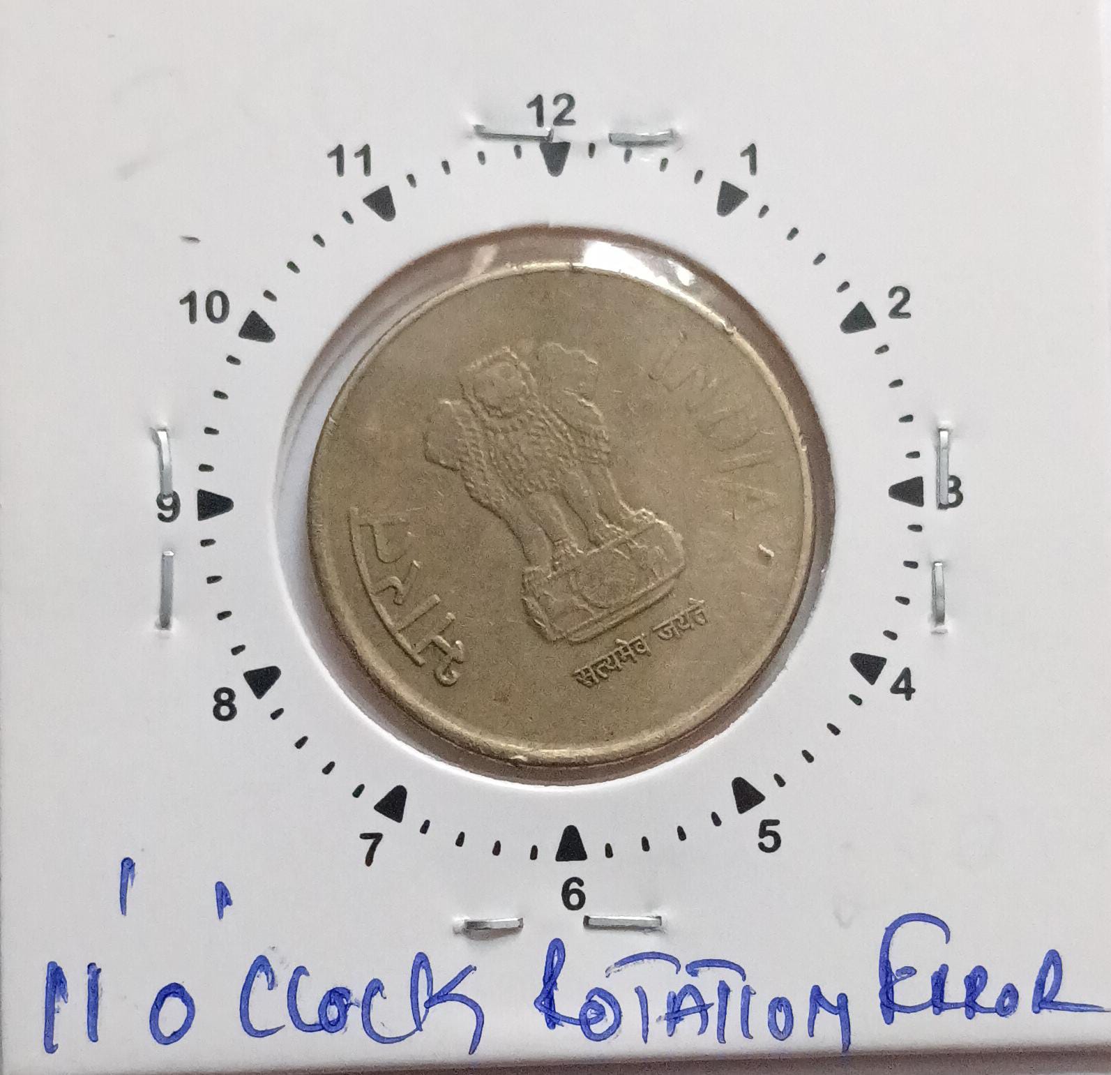 5 RUPEES 2016 HYDERABAD MINT 11 O’CLOCK ROTATION ERROR COIN USED