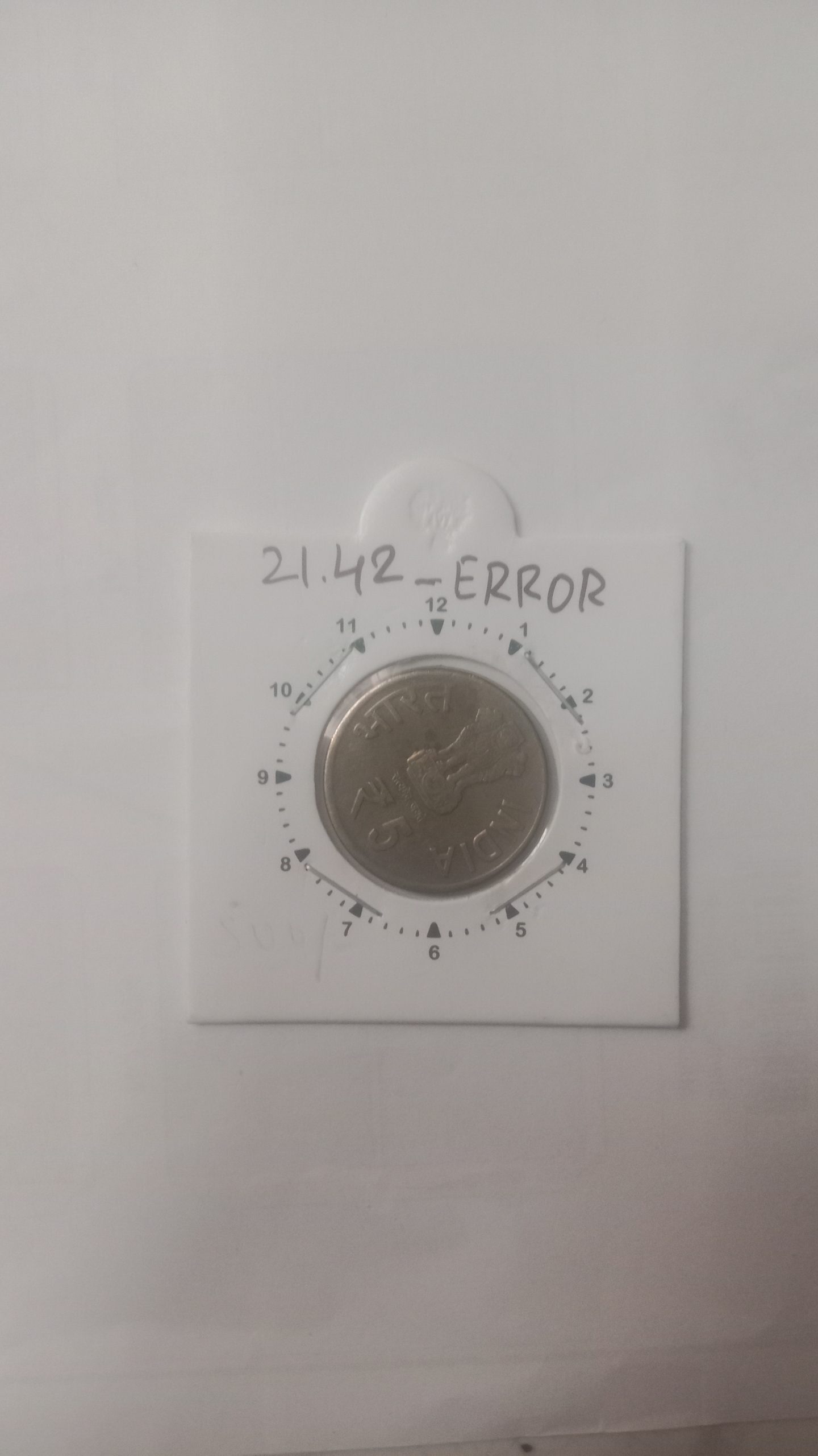 5 Rupees – C A G HYDERABAD MINT 2’O CLOCK ROTATION ERROR COIN USED