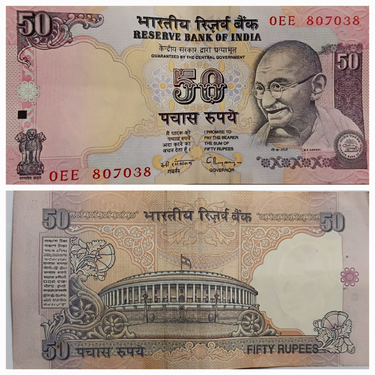 50 Rupees Governor Dr. C. Rangarajan – Inset Plain (1992–1997) UNC 807038
