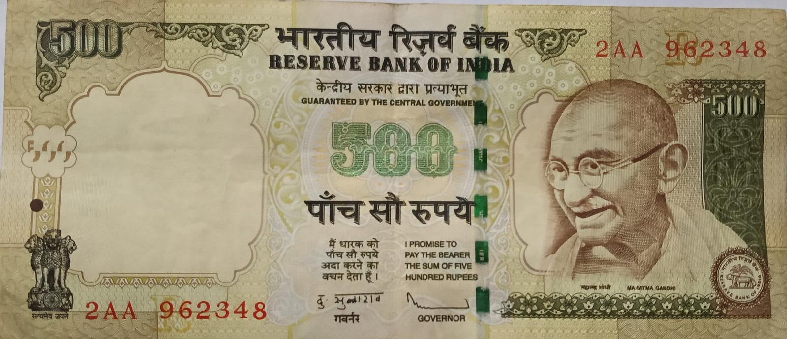 500 Rupees note Governor D.SUBBARAO Inset R 2009 Used