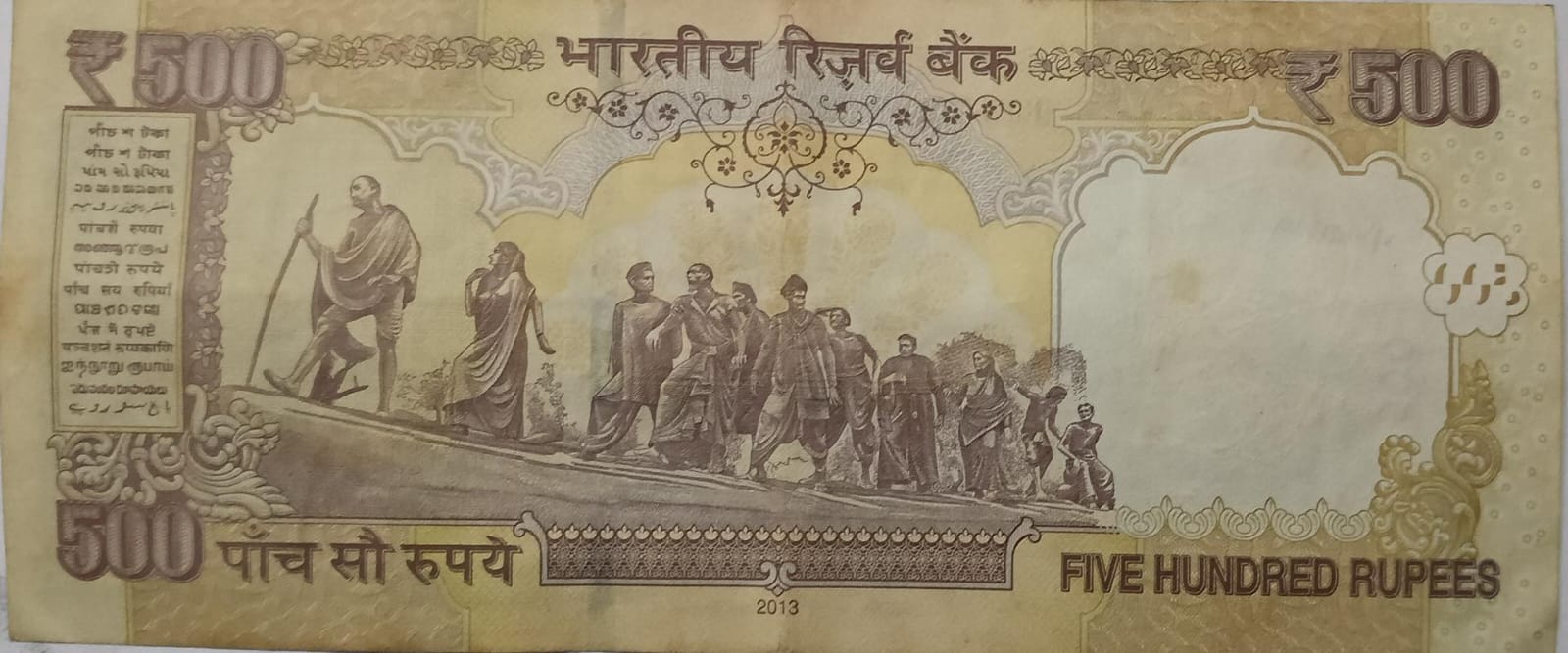 500 Rupees note Governor D.SUBBARAO Inset R 2013 Used