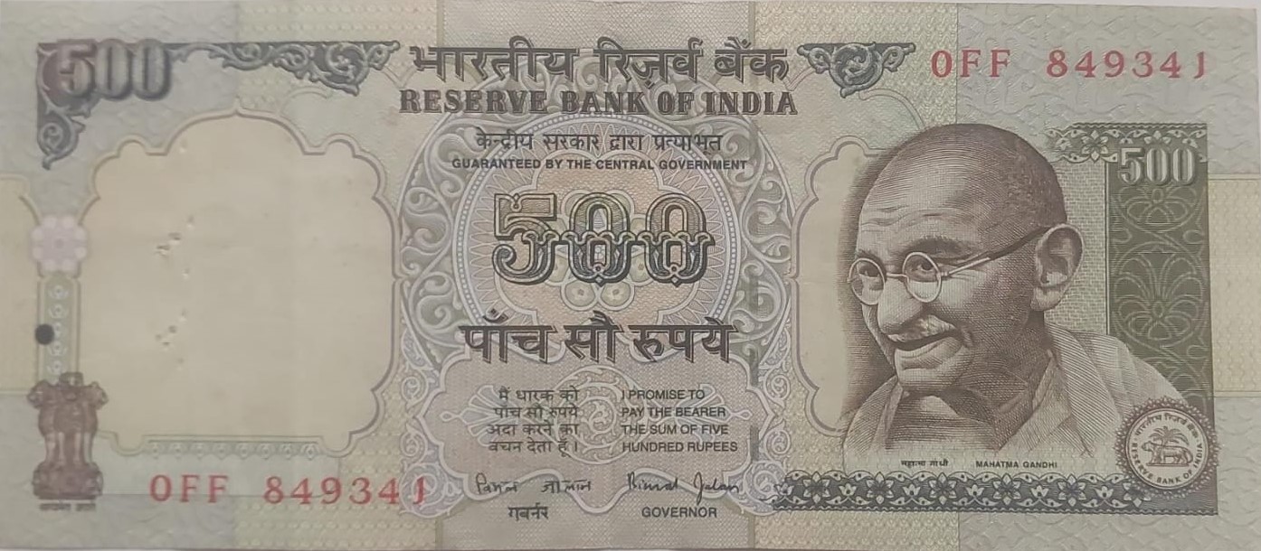 500 Rupees note Governor Dr.BIMAL JALAN Plain Inset Plain Inset(1997-2000) UNC