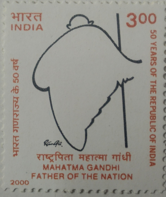 50th Anniv.of Republic: Tribute to Mahatma Gandhi (Hinged/Gum washed stamp)