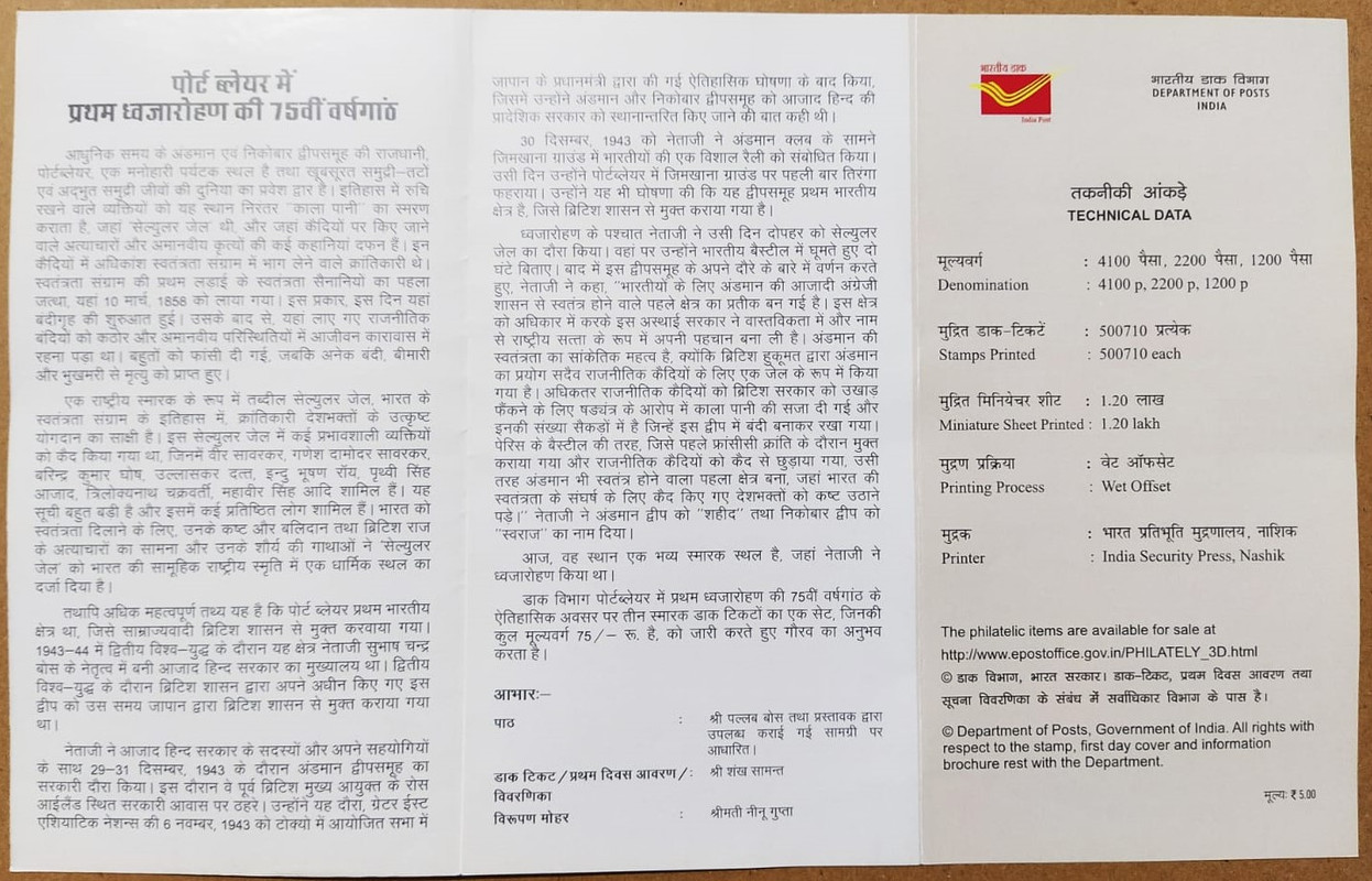 75th Anniv of The First Flag Hosting of Port Blair (SBR)
