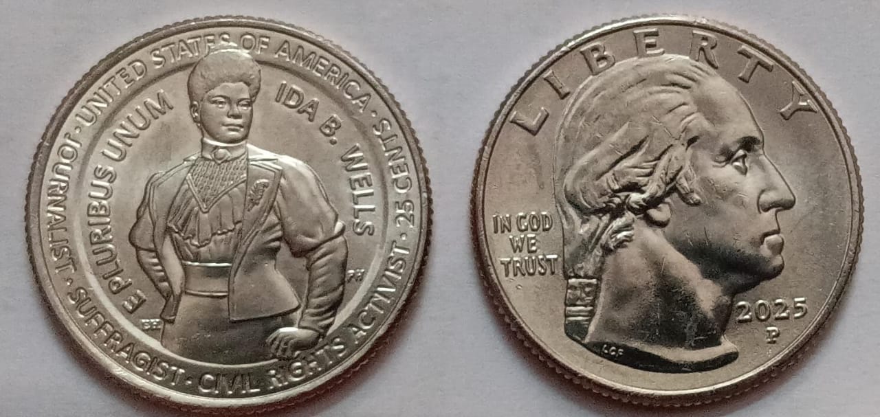 American Women Quarter $ Coin 25 CENTS -E PLURIBUS UNUM-IDA B.WELLS (Journalist,Suffragist,Civil Rights Activist)2025 ‘P’ MINT UNC