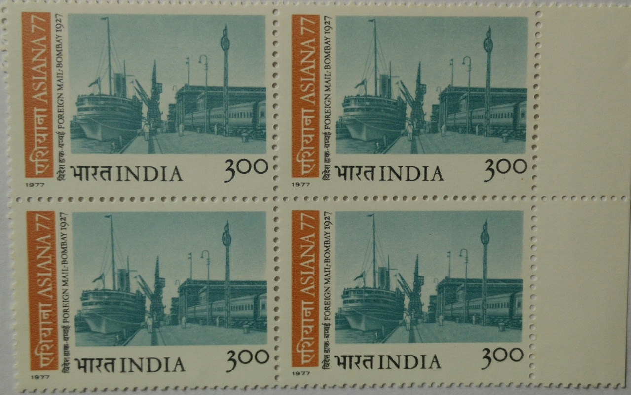ASIANA-77′, First Asian International philatelic Exhibition ,Foreign mail arriving at Bombay (Block of 4 stamp)