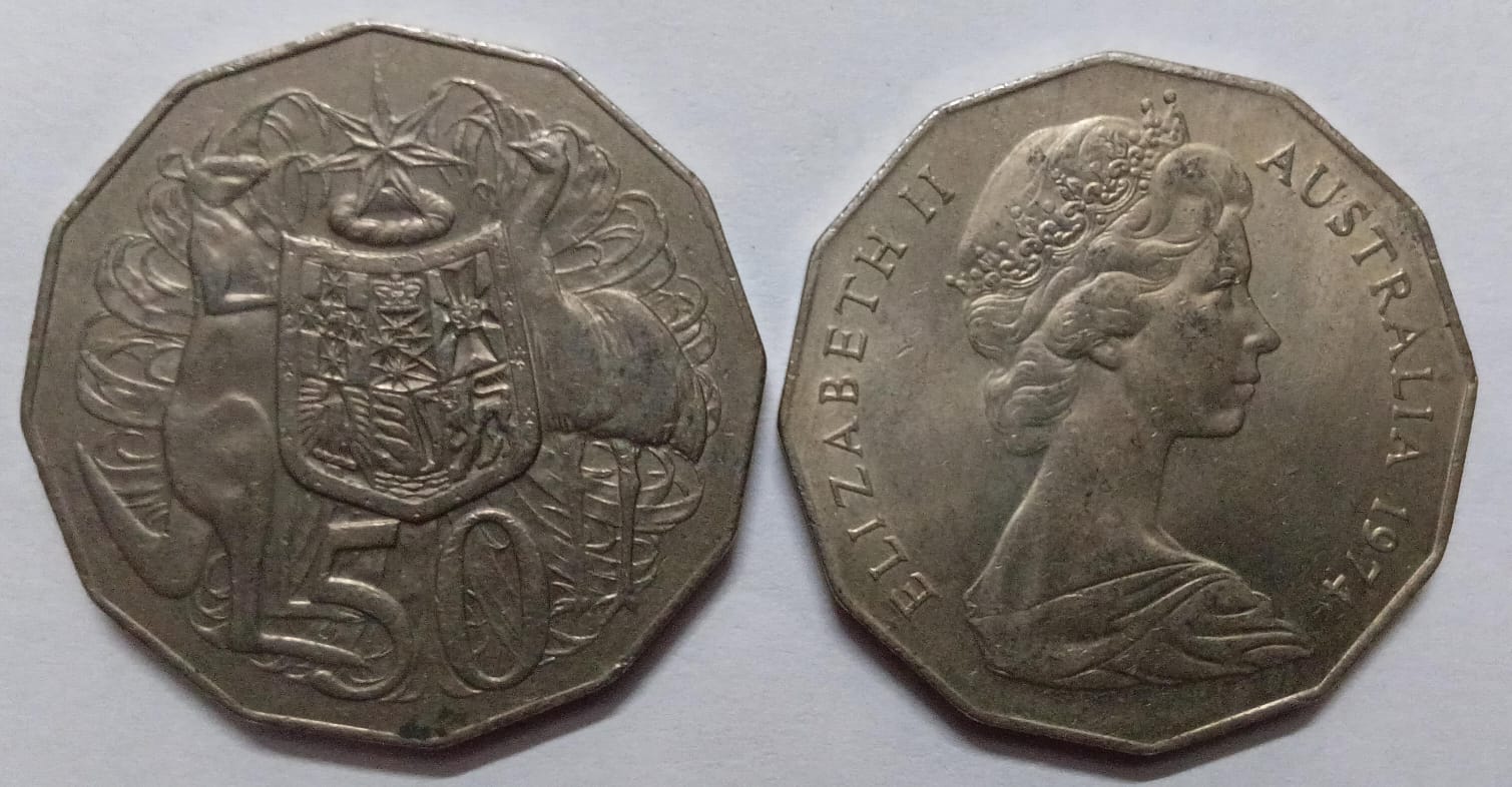 Australia 50 CENTS 1974 Used COIN. Collectible numismatic item. Stock image shown. A valuable addition for collectors of coins and currency.