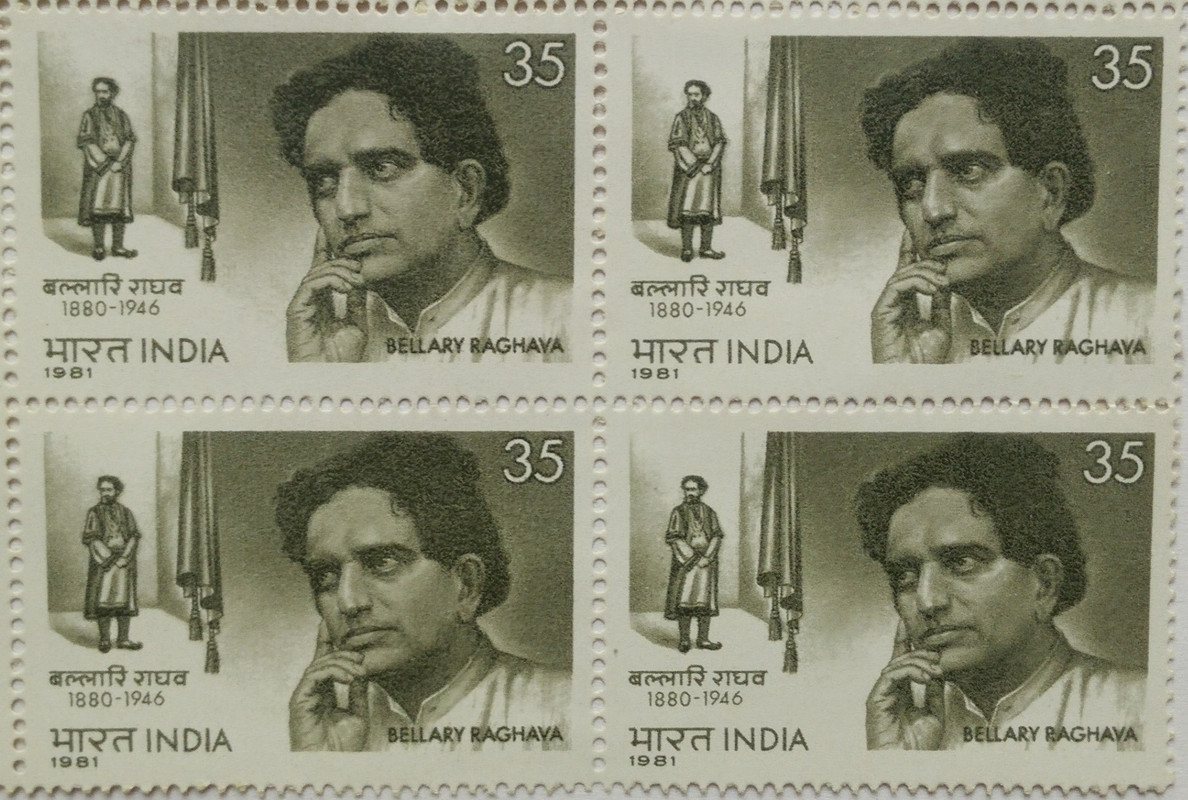 Bellary Raghava. Personality, Cinema, Playwright, Thespian, Film Actor, Stage, 35 P. (Block of 4 stamp)