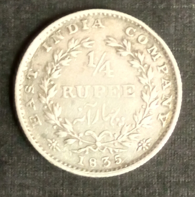 British India Coin East India Company 1/4 Rupee 1835_Used SILVER COIN