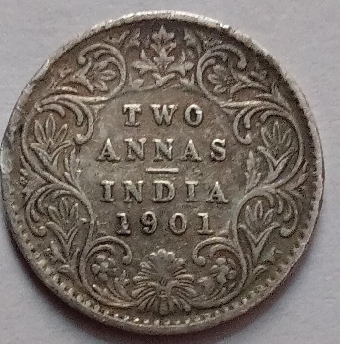 British India Coin VICTORIA EMPRESS-2 ANNAS 1901 USED SILVER COIN
