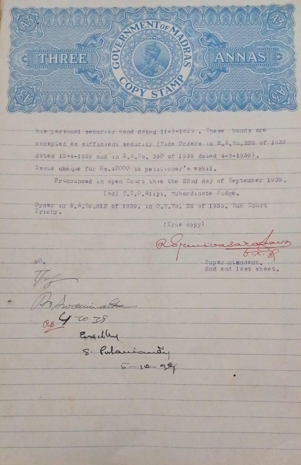 British India King George V 3 Annas Stamp Paper -Government of Madras