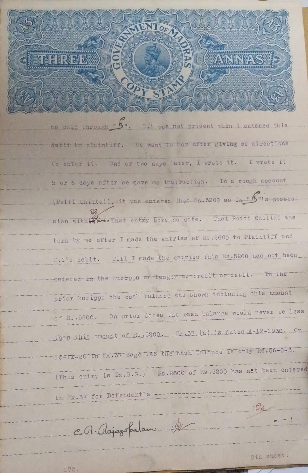 British India King George V 3 Annas Stamp Paper -Government of Madras