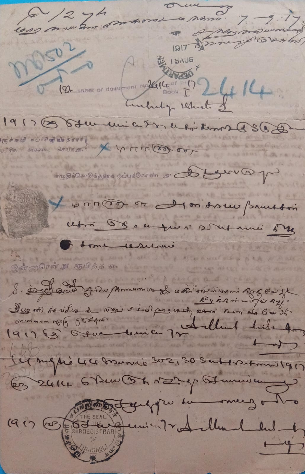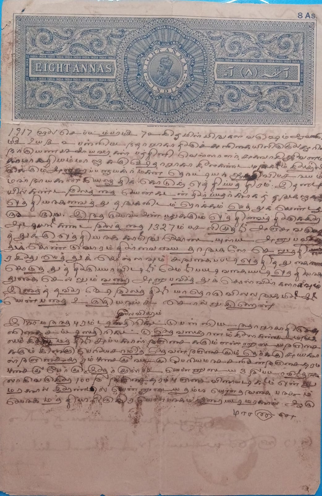 British India King George V 8 Annas Stamp Paper -India stamp office 1917