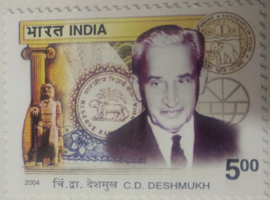 C. D. Deshmukh (Sir Chintaman Dwarakanath Deshmukh) , Personality, Civil Servant, Minister, Reserve Bank of India, World Bank, International Monetary Fund, Banking, Insurance, Emblem , Rs 5 (Hinged/Gum washed stamp)
