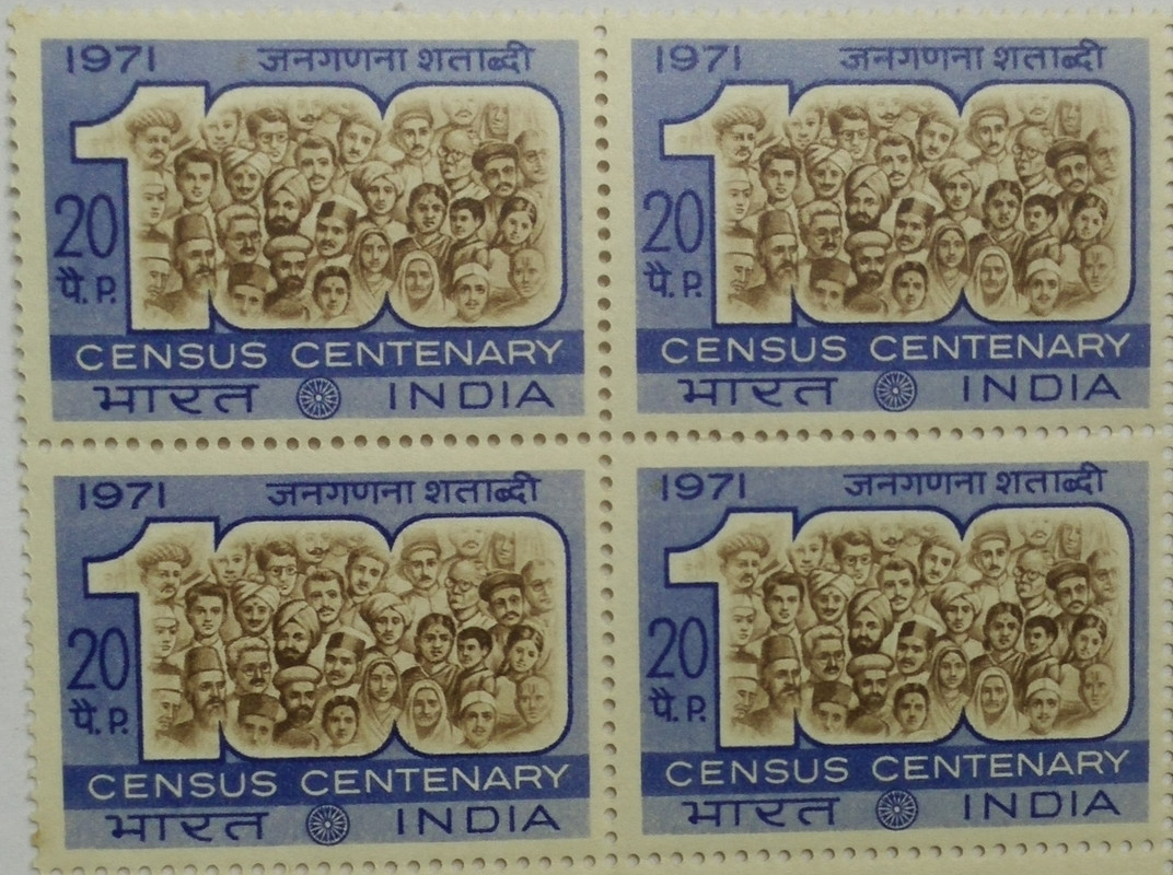 Census Centenary. Census, Centenary, Population, 100 Figure, 20 P.(Hinged Block of 4)