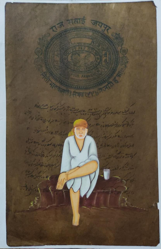 Court Fee Stamp – Jaipur Government – 4 Annas – Sai Baba Painting
