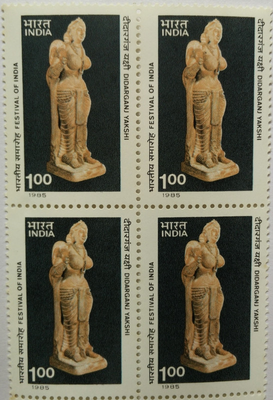 Festival of India – Didarganj Yakshi. Chauri Bearer, Mauryan Art, Sculpture, Carving, Archaeology (Block of 4 stamp)