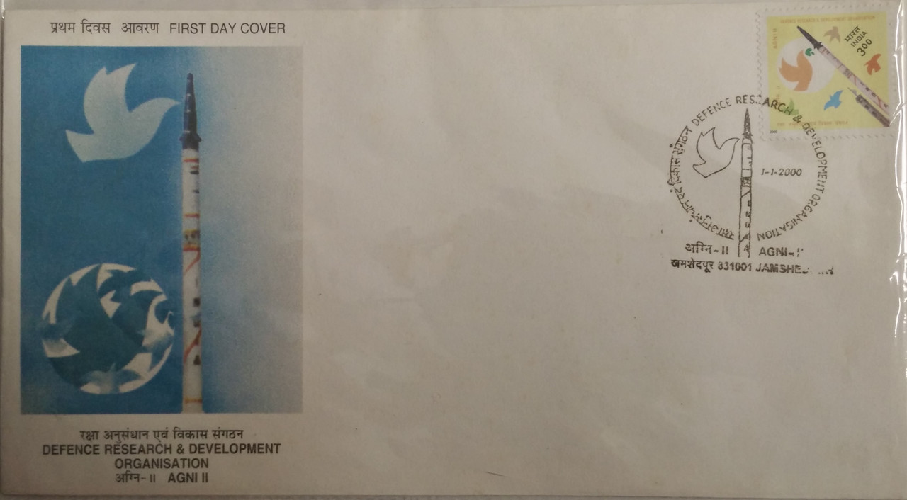 First Day Cover 01 Jan. ’00Defence Reasearch and Devlopment Organization: Agni II Missile).(FDC-2000)