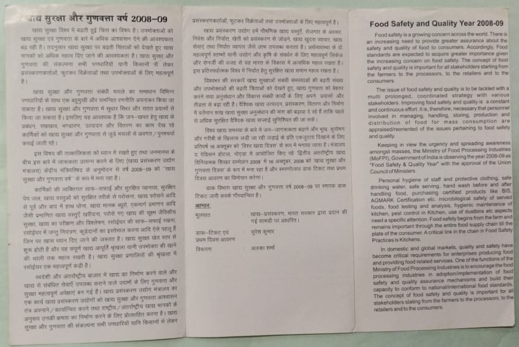 Food and Safety Year 2008 – 09 , Event (SBR)