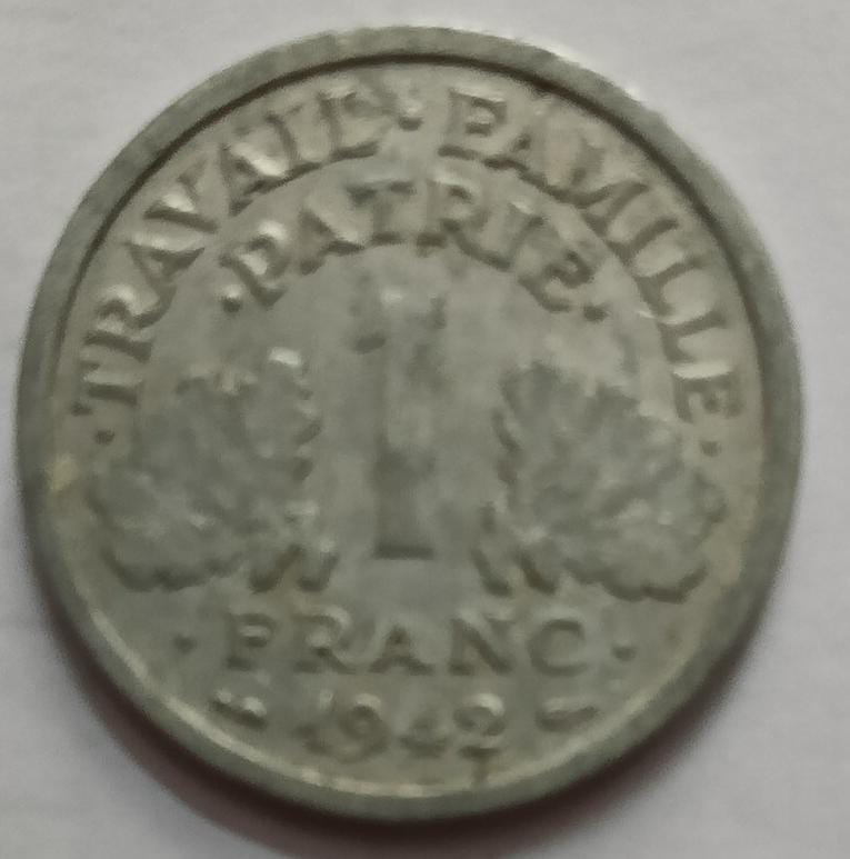 France 1 Franc Coin 1942 (used)
