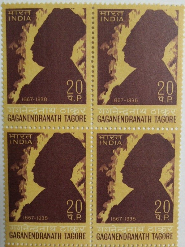 Gaganendranath Tagore. Personality, Painter, Art, Self-Portrait, Cartoonist, 20P. (Hinged Block of 4)