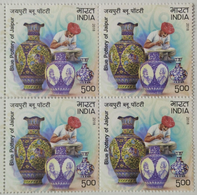 Geographical Indication Registered Handicraft Product, Blue pottery (Block of 4 stamp)