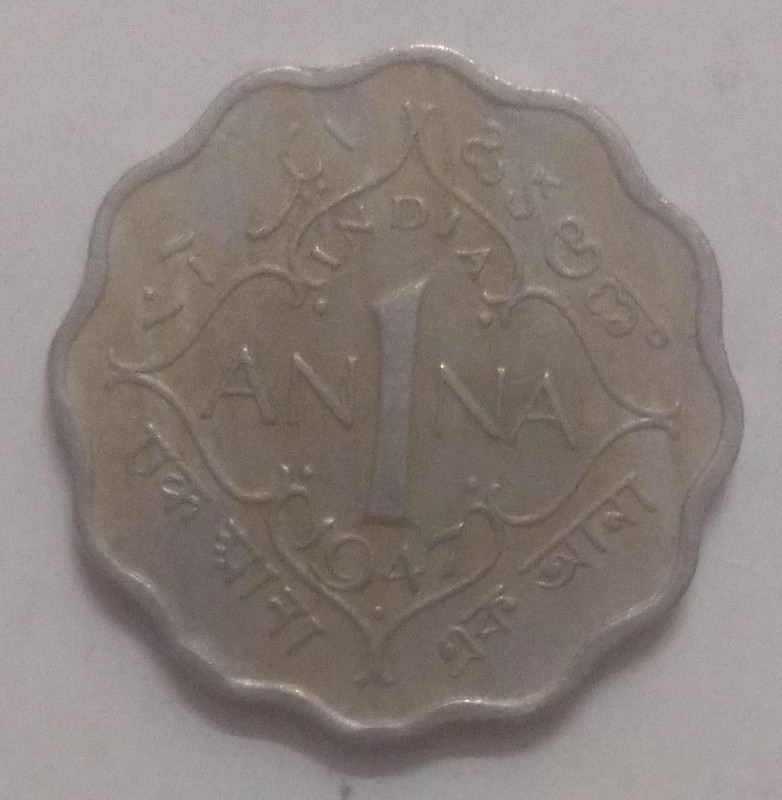 British India Coin GEORGE VI 1 ANNA 1947(used) (Copper Nickle)