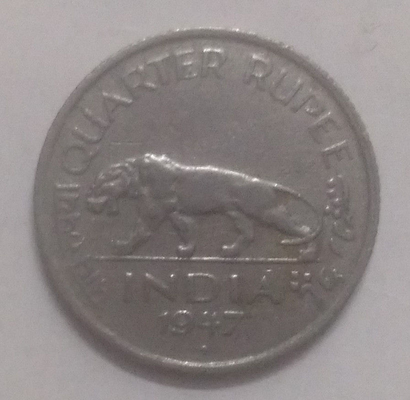 British India Coin GEORGE VI-QUARTER RUPEE 1947(USED) (Nickle)