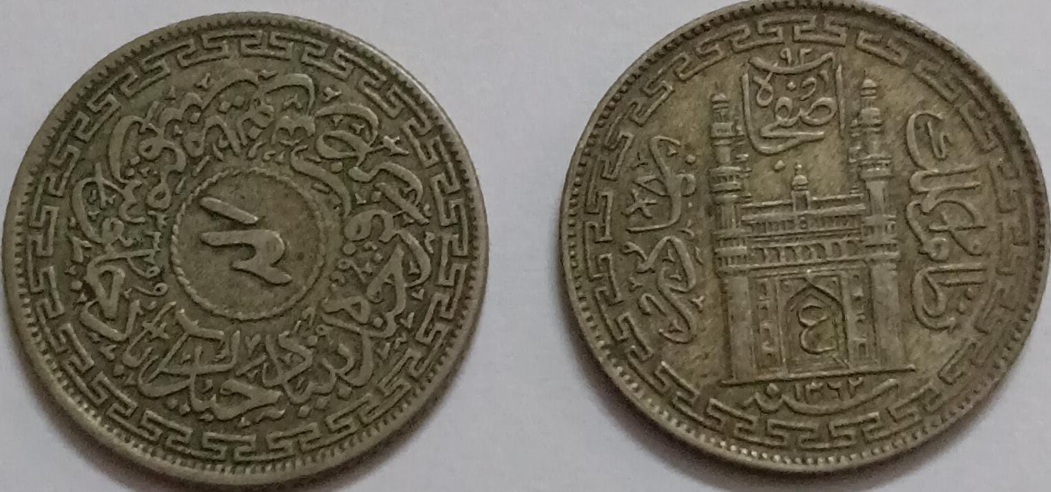 HYDERABAD RULER MIR USMAN ALI KHAN -4 ANNAS SILVER COIN