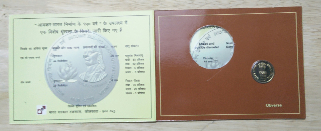 INCOME TAX 150 YEARS OF BUILDING INDIA Rs 5 ONLY 1 COIN(UNC SET)