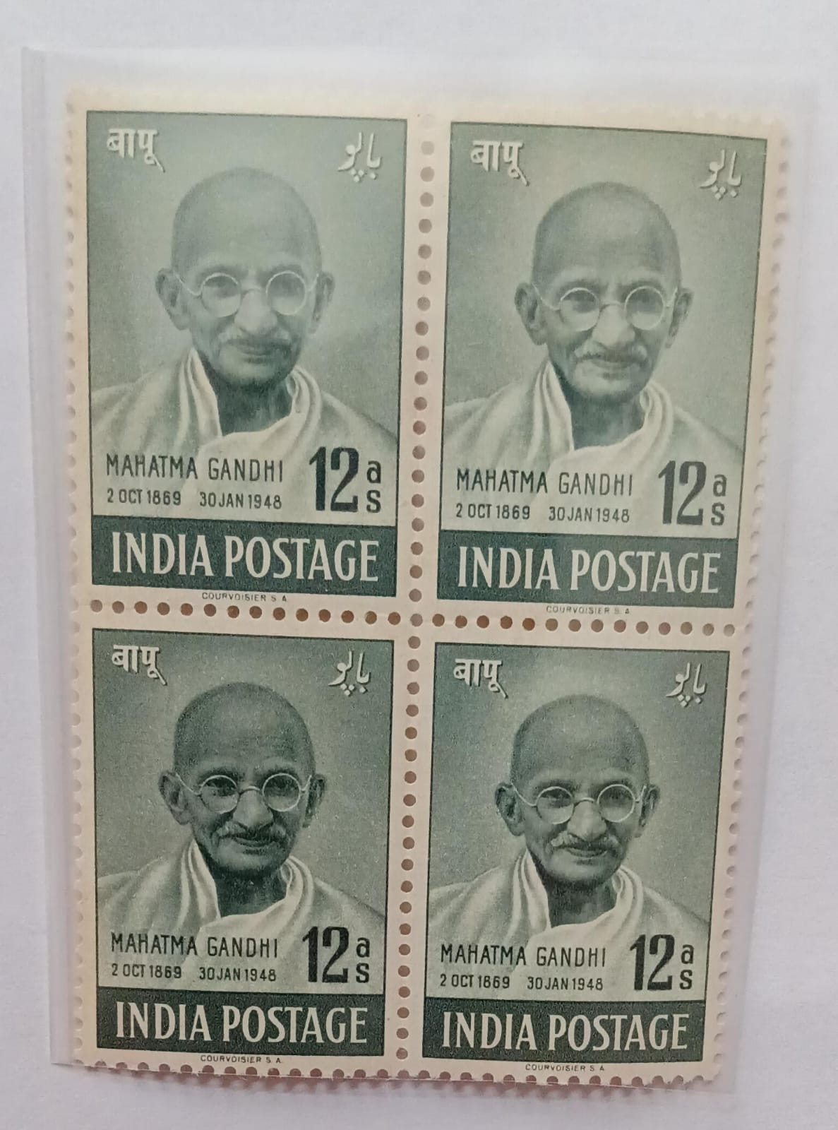 India Stamps – 1st Anniversary of Independence – Mahatma Gandhi Mourning Issue – Hinged Block of 4